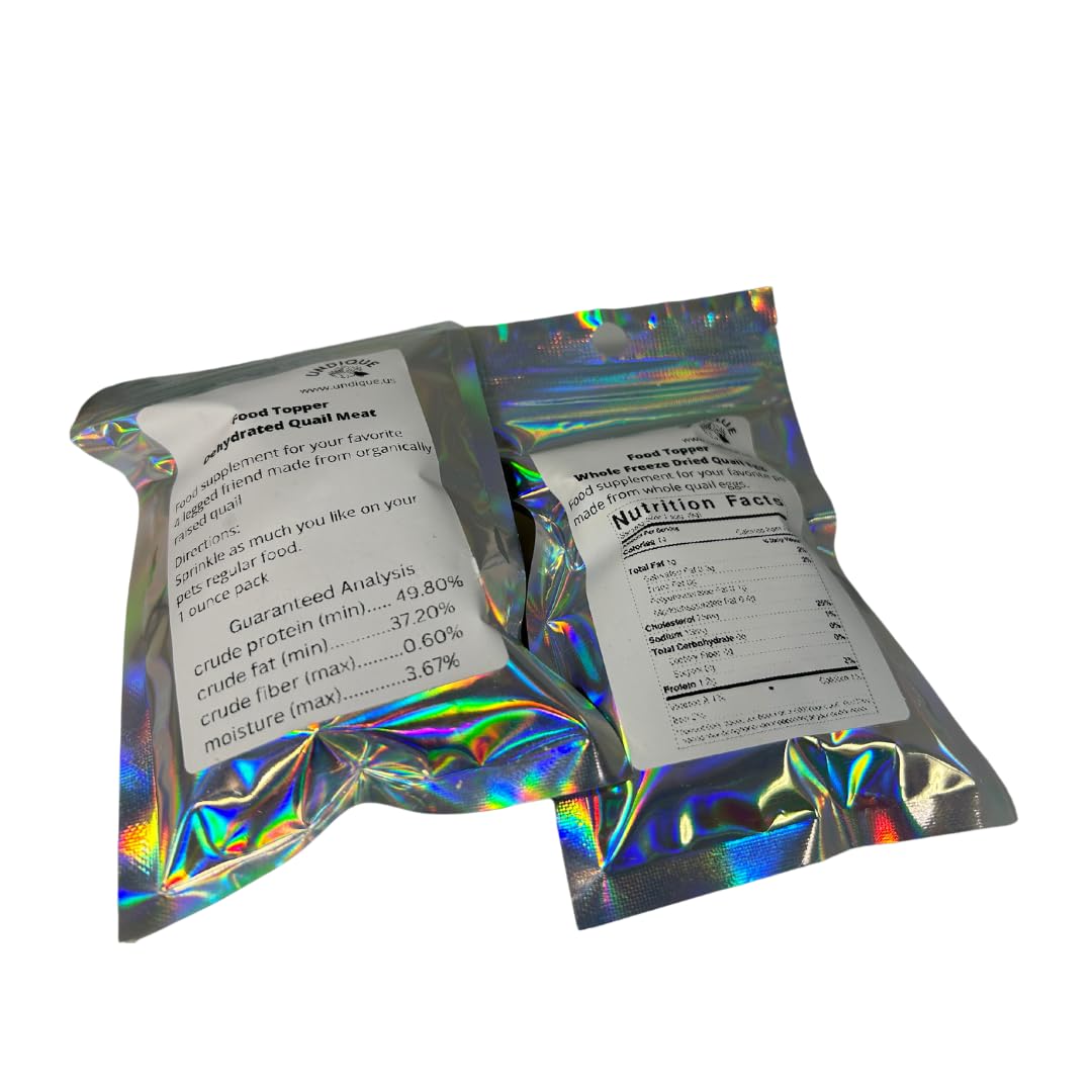 Pet Food Toppers - Whole Quail Egg and Crunchy Quail Meat Crumbles