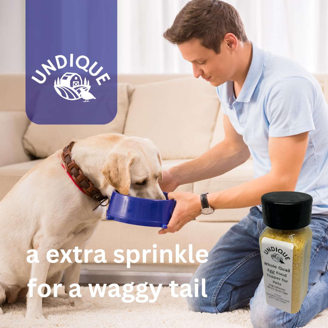 - Wholesome Pet Food Toppers: Our wholesome pet food toppers, made from versatile quail egg products, offer a sustainable pet food topper solution. Enhance your dog's diet with essential vitamins, promoting a shiny coat and healthy skin. Nutrient-Rich: Packed with essential B12, riboflavin, and selenium vitamins, Quailicious Boost helps maintain your dogs energy levels and immune function for overall well-being.